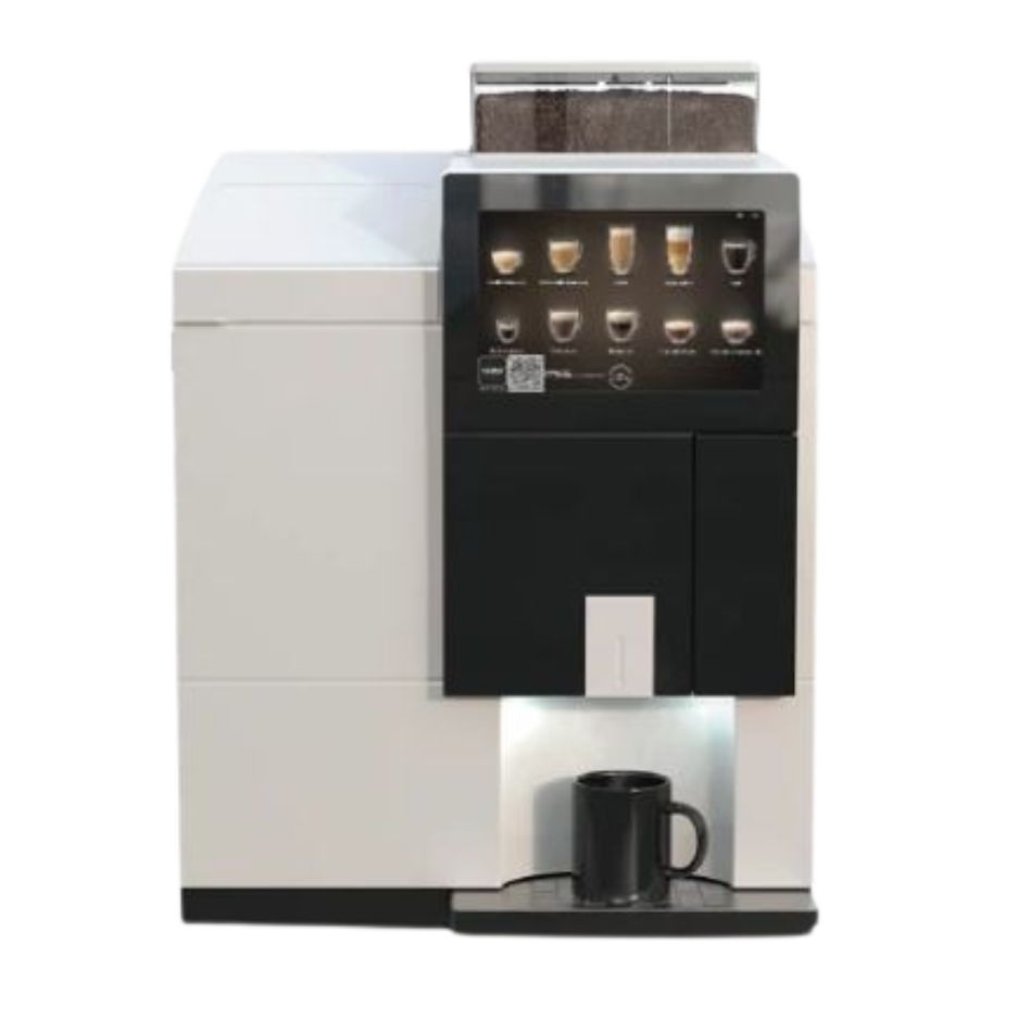 - Écran tactile convivial permet de choisir facilement parmi une large variété de cafés, thés et chocolats chauds